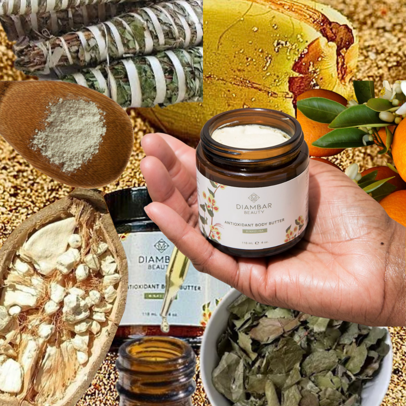 We honor our heritage in every formula. From the healing Senegalese kinkeliba to our name, Diambar (pronounced Jam-baar), meaning 'warrior' in Wolof, our skincare is a celebration of resilience, beauty, and cultural pride